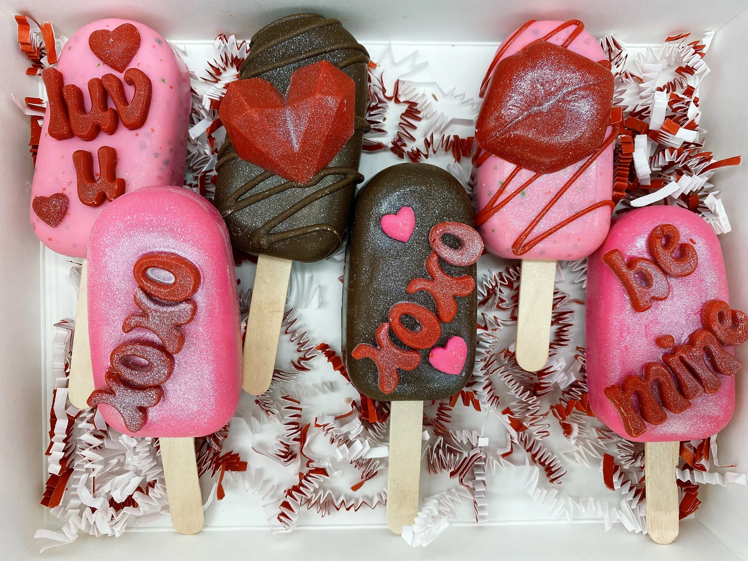 Dive into dessert heaven with our Cakesicle Cupid Collection – where sweetness meets cupid's arrow! These delights feature a dozen irresistibly charming cakesicles, each crafted to steal your heart. Indulge in the perfect blend of flavor and fun, making this Valentine's Day a treat to remember. Choose from a palette of delightful options, including Confetti Cake, Chocolate, White Chocolate Raspberry, Red Velvet, Dark Chocolate Raspberry, Cookies and Cream, Cordial Chocolate Cherry, and more.